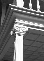 | 正面玄関の四隅の柱の最上部には、明治の擬洋風建築としては珍しく、非常に正確なイオニア式の柱頭飾りが施されている | 旧水沢県庁舎。外観は日本建築だが、内部には、明治22年ごろに使われた法廷など、洋式の部屋もある | やはり擬洋風建築として保存されている「警察資料館」(旧登米警察署)。この柱頭飾りも正確なイオニア式だ |