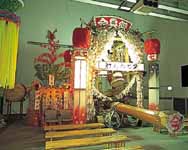 | 観光情報コーナー | 喫茶、休憩コーナー | 館内に展示の「けんか七夕山車」 |