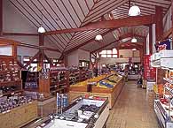 物産館では、山田町で採れた海の幸・山の幸や農産物、林産物が販売されている。メインはとれたてのホタテ、カキなどの海産物。ワカメを加工した「ワカメクッキー」(600円)が好評。秋にはシイタケやマツタケも展示販売される。地元の産物をできるだけ安く提供することで、観光客だけでなく地元住民の生活を支えるような物産館にするのが目標だという。 物産館の中に軽食コーナーがあり、ラーメンやうどん、そばなどが500円前後で食べられる。将来は、外にテントを張ってバーベキューコーナーを作る予定。冬の雪も少なく、景色のいいことを利用し、あえてレストランは作らないという。バーベキューの材料は、町産のホタテやキノコを最盛期に確保し、安く提供する。 駐車場左手にはトイレがあり、 時間開放されている。道路情報システムは、平成11年度中に建設予定。 |