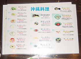 沖縄旅行は楽しかったようで舎員の評判はすこぶるいい。日本語が話せ、レンタカーでどこにでも行くことが出来たのが勝因のようだ。いろんな関係者にお土産を配り終わり、もう日常業務に戻って久しいのだが机上の2つのものがしきりに沖縄を思い出させる。一つは羽田空港で買ったミッキーの腕時計(780円)と、もう一つは初日の恩納村で入った居酒屋の琉球料理のメニューである。ミッキーのほうは時計をするのを忘れたので使い捨てのつもりで買ったのだが、これが予想以上に使いにくく、使いにくいために逆に気になって旅のあいだ気になり、そのうち愛着がでて手放せなくなってしまった。琉球料理のメニューのほうは、沖縄を思いだす際の「資料」としては最高で、なにせこのメニューにある料理を2人前ずつ全部みんなで食ったのである。お店の人は目を丸くしていたが、これはうちではよくやる注文方法で、おいしい店に入るととにかく小皿で全部とって試食をしてみるのである。ここの店はあてずっぽうで入ったのに本当においしく、この印象が後の旅の快適さを決定したといっても過言ではない。このメニューはお店の人に無理を言ってコピーをしてもらった。大切なお土産である。