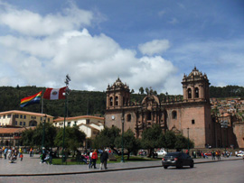 クスコのアルマス広場とカテドラル クスコ名物のクイの丸焼き
