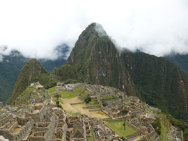 急な上り坂を登ること約1時間。ワイナピチュの山頂に立ったとき、目の前に見えたのは期待していたマチュピチュではなく、真っ白い雲霧があるだけだった。マチュピチュの遺跡はワイナピチュ山とマチュピチュ山の間の尾根に造られている。その絶景が見渡せるはずだったのに。 1月30日、高山病を抱えながら、2泊3日のインカの聖なる谷とマチュピチュのツアーがはじまった。初日はインカの聖なる谷をガイドとともにバスで回る。まず、クスコからピサックという小さな村に到着。丘の上に造られている遺跡を見学する。しかし、倦怠感のせいでガイドの説明は頭の上を通り過ぎ、丘に登る気力もない。 その後、クスコから約80km離れたウルバンバで昼食。高山病に効くとされるコカ茶を2杯飲む。そして、標高2750mのオリャンタイタンボへ向かう。低地にきて体が慣れはじめたのか、コカ茶のおかげか、体調を取り戻しはじめる。オリャンタイタンボの遺跡を巡る。おやつにコカのチョコレート、夕食にはこれまた高山病に効き目があるとされるムーニャ茶を飲む。「下界」並みの快活さを取り戻した。 雨の降る中、19時過ぎにオリャンタイタンボ駅から列車に乗車。2時間ほどでマチュピチュ観光の拠点の村、アグアス・カリエンテスへ到着。明日のマチュピチュへ期待を募らせながらホテルで就寝。 翌31日、目覚めたとき外は大雨。使い捨てポンチョをかぶり、マチュピチュに向かうシャトルバス乗り場へ。マチュピチュの発見者の名前にちなんだ、つづら折りのハイリム・ビンガム・ロードを進む。マチュピチュの入場口からワイナピチュ入山口へ急ぎ、朝7時に登り始める。 しかし、無念にも頂上の景色は最悪。敢えなく下山する。予想外にハードな登山。マチュピチュはクスコより低地と言っても2800mある。昼食後、見張り台に登ったとき、ワイナピチュが雲の間から姿をみせはじめた。待つこと数分、山頭に雲の筋が残っているものの絶景を見ることができた。その後、疲れもふっとびマチュピチュ遺跡をひととおり巡り終える。 アグアス・カリエンテスからクスコへ戻って来たのは2月1日のお昼過ぎ。脚にはワイナピチュ登山の筋肉痛が残っている。この日がクスコの最終日。クスコのアルパカ製品の店やチョコレート博物館に立寄ったりする。 レゴシホ広場の近くを歩いているとき、「インカマッサージ」と声をかけられた。2日前にも声をかけてきた客引きだ。日本人の多い観光地だけに私たちのことは忘れてしまっているとふんで、「私たちのことちゃんと覚えている」と聞いてみた。すると、名前までしっかり覚えているではないか。これも何かの縁と思い、インカマッサージを初体験。30分で20ヌエボ・ソル(約800円、1ヌエボ・ソル=40円で計算)。熱した石が筋肉痛の足に心地よい。クスコは高山病の苦しみにはじまり、インカマッサージの安らぎに終わった。いまいち普通のマッサージとの違いはよく分からなかったが。 明日はペルーを出国してティティカカ湖の聖地コパカバーナへ向かう。 |