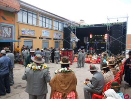 2月2日広場周辺で行進する踊り手 ステージ前に集う人々