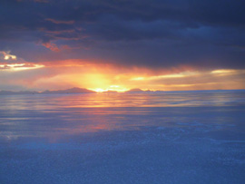 夕日に照らされるウユニ塩湖 |