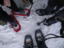 「靴納め」という言葉があったから、今日は「靴初め」とでもいうのだろうか。新しい年の初山行というかスノーハイキング。スパイク長くつに今季初のスノーシュー装着だ。最初の山行予定は男鹿真山(567m)だったが、昨日の不気味なほどの大雪に恐れをなし、急きょう近場の一つ森公園に変更になった。この雪ではスノーシューでも山は入るのは危険。さらに目的地に行くまでの車のアクセス(渋滞・通行止め)が不安だ。その点、秋田市中心部から南東にある一つ森公園なら車で10分もあればいける。ジョギングコースやロックガーデン、体育館や旧黒澤家住宅などのある市の総合公園で遊び場は豊富だ。バブル華やかなりし86年に開園、贅を尽くした広大な敷地のなかにある。市内中心部からは3キロ近く離れているせいか、市民というよりも近所の人たちのための公園といった位置に甘んじている感は否めない。いい公園なんだけどね。たぶんに立地に問題があるのだろう。日本赤十字病院のそばだから、これから人気が出る公園なのかもしれない。冬は特にいい。赤ゲラや小動物の宝庫でもある。 今日の参加者は3名。昨日の大雪の状況からして妥当な人数だろう。 人影の少ない公園をのんびりと歩いているうちに青空が見えだした。途中の桜の木をみてSさんがポツリ。「去年より桜のつぼみが大きい。春は早いね」