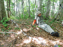 2週間ぶりの山歩き。そして6月中旬からのブラジル旅行のこともあり、これが旅まで最後の山行になる。ケガが怖いので山歩きは控えたほうがいい、とアドバイスを受けたのだ。 で、今日はお気に入りの八塩山矢島口コース。ここの登山口に入るには狭くてデコボコ道の荒倉林道を2.4キロ車で走らなければならない。ここで必ずと言っていいほど小動物とあう。今日は成獣のカモシカとあった。まじかで動物と遭遇できる確率がこの山(アプローチ道だが)は高い。ほとんど人が入らない場所だからだろう。 登山道は最初から最後までフカフカの落ち葉だ。この落ち葉の絨毯を往路4.4キロ、復路も同じく4.4キロ、計8.8キロの気持ちいいハイキングが続くのだからこえられない。息切らすような急峻や何度も休まなければならない難所もない。クマがちょっと怖いが、ずっと笛を吹き続ければ近づいては来ないはずだ。